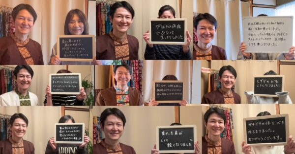 タイ古式は手のひらを多用するため、手のぬくもりが心地良く、笑った時に分泌される幸せホルモン(オキシトシン・セロトニン)が活性化されるといわれています。
